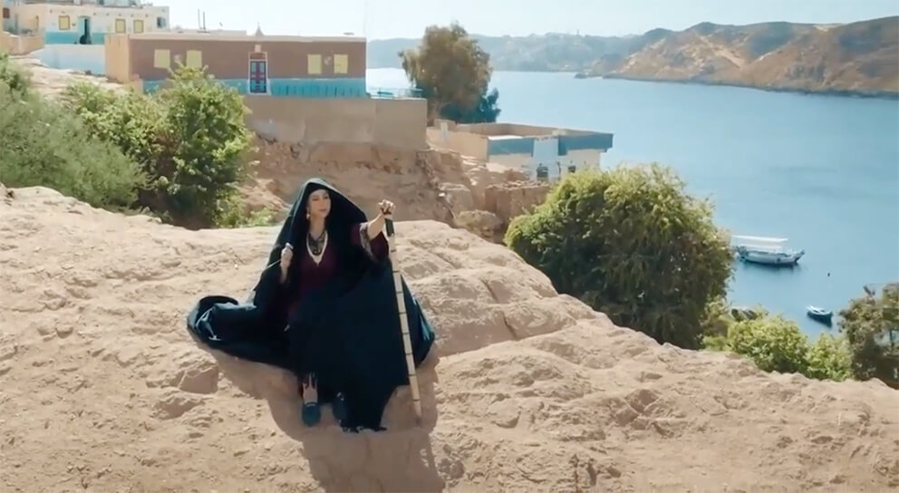 على تلة عالية وسط عناصر الطبيعة الساحرة، حيث ألوان البيوت التي تتفق مع لون الماء والسماء والجبال التي تحيط المكان من كل جانب، جسلت “رحيل”، والتي تجسد دورها “حنان مطاوع” بجبروت امرأة قوية دافئة المشاعر متدفقة العواطف التي تخفيها، على إيقاع موسيقى ناعمة يختلط فيها المزمار البلدي بالدف وغيرها من آلات تنتمى إلى اللون الموسيقي الصعيدي، في لحظة صفاء تجتر الذكريات، وتسرح بخيالها الذي يجرفها نحو ذلك الحب المستحيل، الذي يربطها بـ “حجاج” الذي يلعب دوره بنعومة ودفء “محمود عبد المغني”، ذلك الإنسان البسيط في كل شيئ، حياته، ملابسه بيته المتواضع، لكن قلبه بحبها يتسع بحجم هذا الكون، وذلك عبر مشهد يعتبر الـ “ماستر سين” في مسلسل “بت القبايل”، من تأليق محمد البجلاتي، وسيناريو وحوار “شاذلي فرح”، وإخراج حسني صالح.