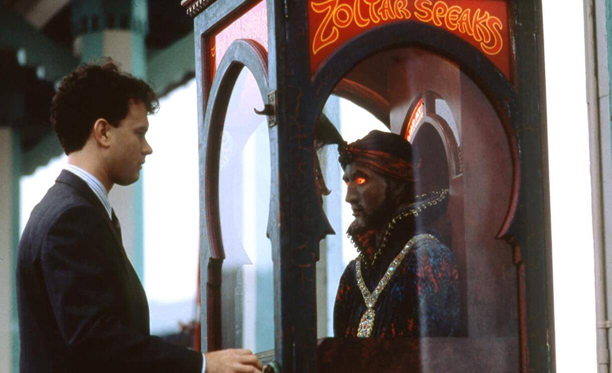– في عام 1988 يؤكد توم هانكس أنه ممثل كوميدي رفيع المستوى ، ويحقق شهرة عالمية كبيرة من خلال فيلم Big ، قصة الصبي الصغير “جوش” ذي الثلاثة عشر عاماً ، الذي عبر عن أمنيته الحقيقية أمام ماكينة الأمنيات “زولتار” وهي أن يصبح كبيراً دون الحاجة لمرور السنوات كي يكبر ، وتتحقق الأمنية وبالفعل يصحو في اليوم التالي ليجد نفسه في جسد شاب كبير لكن شخصيته مازالت بعمر 13 سنة ، ويحصل “جوش” على صديقة حميمة Girl Friend وعلى وظيفة بشركة ابتكار وتصنيع ألعاب أطفال ، والفيلم مليء بالمواقف الكوميدية التي لم تخرج أبداً عن سياق القصة وأهدافها. تكلف هذا الفيلم 18 مليون دولار وجمع عالمياً حوالي 152 مليون دولار. وترشح “توم هانكس” ذو الثانية والعشرين من العمر آنذاك عن هذا الفيلم ولأول مرة لجائزة الأوسكار كأفضل ممثل في دور رئيسي بينما فاز عن نفس الفيلم ولأول مرة بجائزة جولدن جلوب كأفضل ممثل رئيسي ، كما ترشح الفيلم لجائزة الأوسكار كأفضل سيناريو. كتب سيناريو الفيلم كل من الكاتب والمنتج “جاري روس” والكاتبة والمنتجة “آن سبيلبرج” شقيقة المخرج الشهير “ستيفن سبيلبرج” ، والفيلم أخرجته للسينما “بيني مارشال” وهي ممثلة ومخرجة ومنتجة معروفة في هوليوود.