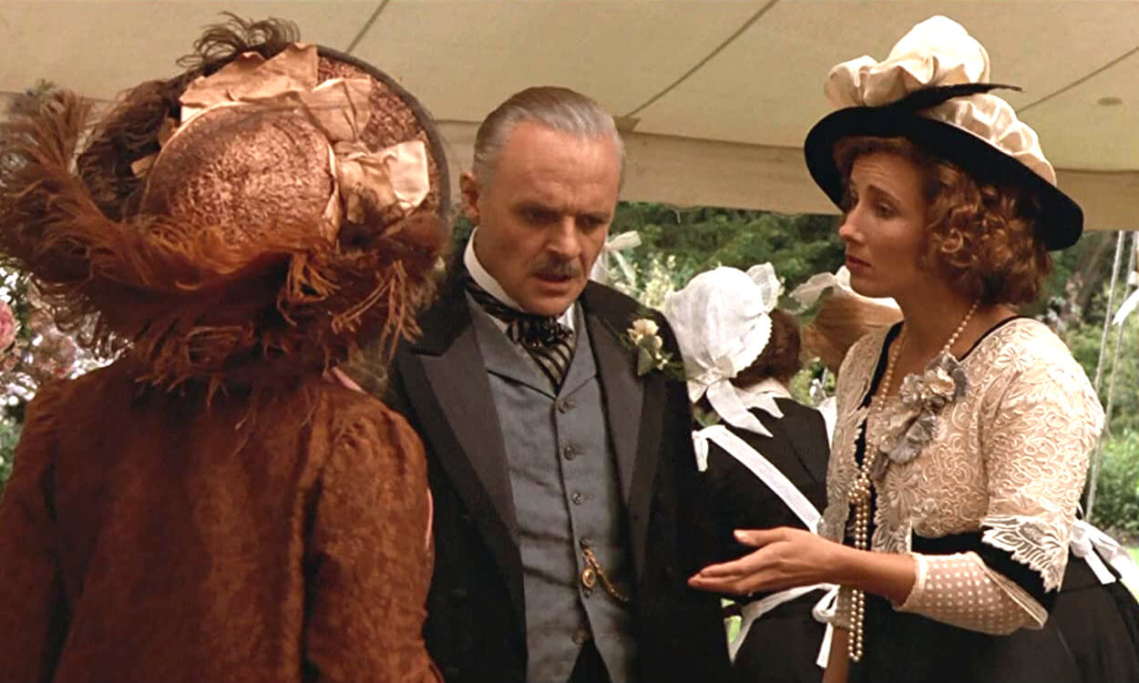 – في عام 1992 تبدأ “إيما تومسون” البداية المُثلى لشهرتها العالمية مع العملاق “أنتوني هوبكنز” والممثلة البريطانية القديرة “فينيسا ريدجريف” والمخرج القدير “جيمس إيفوري” وكاتبة السيناريو الراحلة “روث براور جيبفالا” ، ومع المنتج العالمي المتميز الراحل “إسماعيل نور محمد” ذي الأصول الهندية والشهير بإسم “إسماعيل ميرشانت” Ismail Merchant وذلك في واحدٍ من أروع وأعظم الأفلام السينمائية العالمية (بآراء العديد من كبار صُناع الأفلام ونقاد السينما في العالم) وهو فيلم Howards End ، وقصة الفيلم ملخصها أن “هيلين اشليجل” (هيلينا بونهام كارتر) تقع في حب الشاب “بول ويلكوكس” (الممثل البريطاني الراحل “جوزيف بينيت”) ولكنها غير مرحب بها ، بينما تنشأ صداقة حميمة بين أختها “مارجريت” (إيما تومسون) ووالدة “بول” السيدة “روث ويلكوكس” (فينيسا ريدجريف) التي تعدها وتكتب في وصيتها بالفعل منزل العائلة إرثاً لها ، لكن تلك الوصية تختفي بعد وفاة السيدة “روث ويلكوكس” ويبدو أن حلم “مارجريت” في هذا المنزل قد تبخر إلى الأبد ، حتى يأتي إعجاب أرمل العائلة “هنري” (أنتوني هوبكنز) بـ “مارجريت” وانجذابه لها فتتغير مجريات الأحداث.
