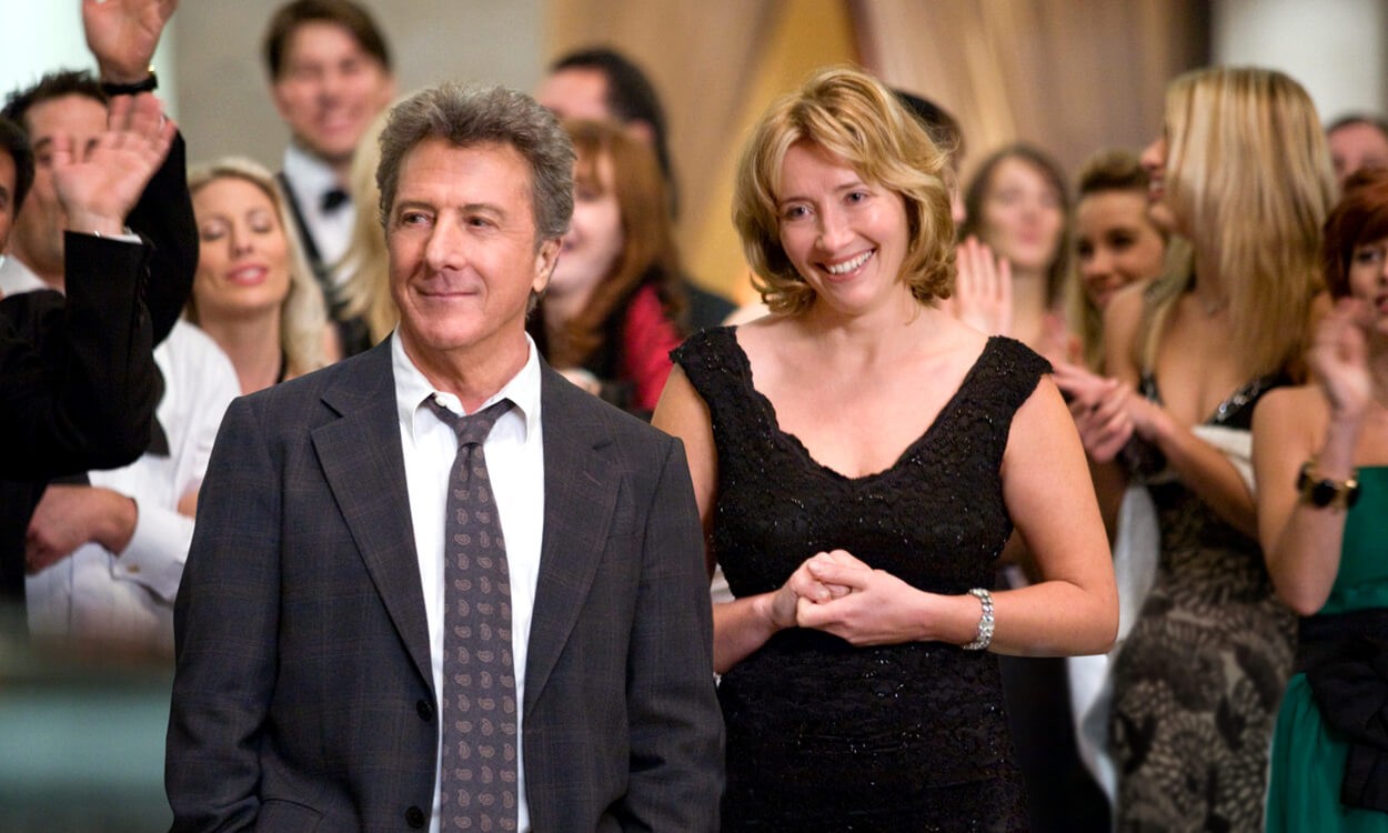 – في عام 2008 تقدم “إيما تومسون” دوراً رومانسياً رائعاً مع النجم البارع “داستن هوفمان” في الفيلم الرائع Last Chance Harvey والذي يتناول معاناة كاتب الأغاني المكافح “هارفي شاين” (داستن هوفمان) الذي حضر من أمريكا إلى لندن لحضور حفل زفاف إبنته ، وعند موعد عودته يتأخر في الحضور إلى مطار هيثرو وتفوته رحلة الطائرة التي كانت ستعيده إلى نيويورك ، وقد خلَّف ذلك آثراً نفسياً سيئاً على “هارفي” لأنه قد فقد وظيفته ، وبينما يمكث داخل مطار هيثرو غارقاً في إحباطه وأحزانه يلتقي السيدة “كيت” (إيما تومسون) وهي الأخرى تعاني في حياتها من ضغوط عملها كموظفة في الحكومة البريطانية وضغوط أخرى من مكالمات والدتها لها على الهاتف ويبدو أنها لم تنل لحظة سعادة واحدة في حياتها ، وتنشأ علاقة تدريجية بين “هارفي” و”كيت” حتى يقعان في حب بعضهما البعض. ترشحت “إيما تومسون” وكذلك ترشح “داستن هوفمان” عن هذا الفيلم لجائزة جولدن جلوب كأفضل ممثلة وأفضل ممثل في دور رئيسي.