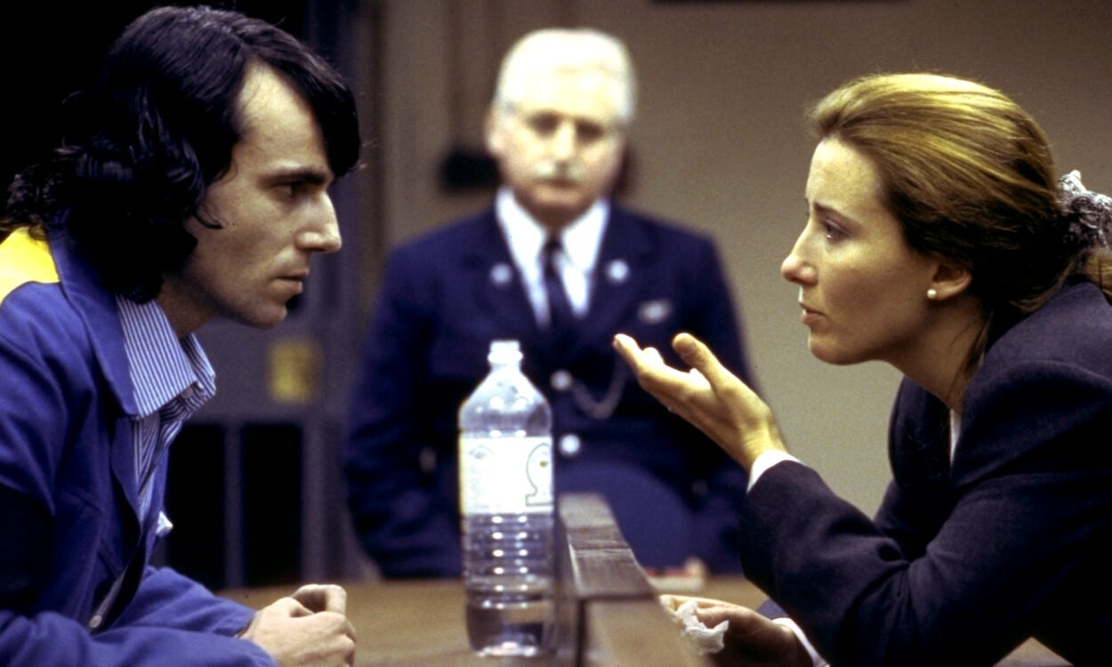 وتختتم “تومسون” العام 1993 مع عبقري الآداء “دانيال داي لويس” والممثل القدير الراحل “بيت بوستيثوِيِت” والمخرج “جيم شيريدان” بفيلم In the Name of the Father حيث تلعب “إيما تومسون” دور “جاريث بيرس” محامية الدفاع التي تبحث في قضية “جوسيبي كونلون” (بيت بوستيثوِيِت) وموته وهو في الحجز ، وهو والد الشاب الآيرلندي العاطل “جيري كونلون” (دانيال داي لويس) المسجون ظلماً بتهمة المشاركة في تفجير أحد البارات في “جيلدفورد” بجنوب غرب لندن وهو الحادث الذي أودى بحياة 5 أفراد وجرح العشرات ، وبعدما اعترف الجاني الحقيقي للتفجير بارتكابه لهذا العمل الإرهابي تعمدت الشرطة إخفاء ذاك الاعتراف بغرض تفادي الإحراج بعدما تم الحكم بالفعل على “جيري” وأصدقائه بالسجن مدى الحياة ، وأثناء بحث المحامية “جاريث بيرس” في ملف موت والد جيري “جوسيبي كونلون” تقع يدها على وثائق سرية خطيرة (ممنوع عرضها على هيئة الدفاع) ، وتستطيع المحامية البارعة في النهاية من تبرئة “جيري” وزملائه وتحريرهم من السجن بموجب تلك الوثائق ، ويقوم “جيري” مع المحامية “جاريث بيرس” بتحويل قضية ظلمه وموت والده في الحجز إلى قضية رأي عام. ترشح هذا الفيلم لسبع جوائز أوسكار وأربع جوائز جولدن جلوب وجائزتين من BAFTA ، وكان من بين ترشيحات الأوسكار وجولدن جلوب “إيما تومسون” كأفضل ممثلة في دور مساعد و”دانيال داي لويس” كأفضل ممثل في دور رئيسي ، وترشح “دانيال داي لويس” لجائزة BAFTA كأفضل ممثل في دور رئيسي ، وترشح “بيت بوستيثوِيِت” لجائزة الأوسكار كأفضل ممثل في دور مساعد ، كما ترشح “جيم شيريدان” لجائزة الأوسكار كأفضل إخراج وكذلك ترشح بالشراكة مع الكاتب “تيري جورج” لجائزتي الأوسكار و BAFTA كأفضل سيناريو.