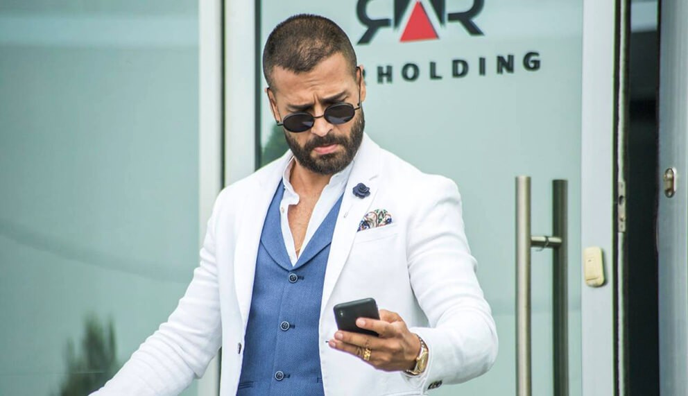 من عالم الإعلانات والتقديم التليفزيوني، كمقدم عبر برنامج (الصباح) على شاشة (المستقبل)، استطاع أن يتجاوز بسرعة (عقبات) الكاميرا وصعوبات البث المباشر، ليثبت نفسه كمذيع واعد يستطيع أن يضمن لنفسه مكانة مميزة في عالم التقديم، ثم دخل الشاب الوسيم عالم التمثيل فاستطاع إثبات موهبته بشكل لافت، وبعيدا عن شكله حقق نقلة نوعية كبيرة في مسلسل (جذور)، تغيرت معها خياراته وشروطه في الأعمال الدارمية، وحمل لقب ملك جمال لبنان لسنتين على التوالي، ثم فاز بعدها بلقب ملك جمال الدول الآسيوية، وهو من أكثر الملوك الذين كثرت حولهم الأقاويل والشائعات، وأصبح محط أنظار الكثيرين من المحبين والمبغضين والغيورين، فكان باختصار حالة فريدة من نوعها، حيث طرق أبواب الشهرة فشرعت له أبوابها على مصراعيها فنهل منها الكثير ولا يزال، وأكثر ما يميزه بالإضافة إلى أدائه التمثيلي البارع حديثه المميز حول الشأن السياسي اللبناني والمليء بالصراحة والجرأة، إلى حد أن أصبح في أحداث لبنان هو رأس حربة الحراك المدني بفضل احتكاكه وتواجده في الشارع.