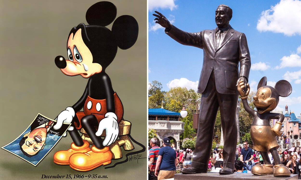 من الجدير بالذكر أن “روي” الشقيق الأكبر لوالت ديزني قد وافته المنية في 20 ديسمبر عام 1971 وعمره 78 عام (بعد افتتاحه لمدينة “عالم والت ديزني” بشهرين فقط – كان الافتتاح في 1 أكتوبر 1971) ، بينما رحلت زوجته “ليليان ديزني” عن عالمنا في ديسمبر من عام 1997 وعمرها 98 عام ،، وقد كتبت إبنته “دايان ديزني” كتاباً عن والدها بعنوان “والت قبل ميكي” ، التي تُوفيت في نوفمبر 2013 وعمرها 79 عام ، وقد تحول كتابها “والت قبل ميكي” بعد وفاتها إلى سيناريو فيلم تم إنتاجه عام 2015 ويتناول السنوات المبكرة من حياة “والت ديزني” المهنية قبل إبتكاره لشخصية “ميكي ماوس” ، وقام بدور “والت ديزني” الممثل “توماس إيان نيكولاس” بينما قام كلٌ من الممثل “جون هيدر” بدور شقيقه “روي” والممثل “أرماندو جوتيريز” بدور زميله وشريكه “أوب” ، كما قام النجم بديع الآداء “توم هانكس” بتجسيد شخصية “والت ديزني” في فيلم Saving Mr. Banks عام 2013 .