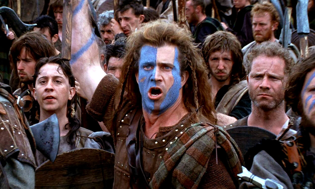 – في عام 1995 قدم النجم “ميل جيبسون” كممثل ومخرج ومن خلال شركته الإنتاجية The Ladd Company (شريك إنتاج) مع شركة Icon Entertainment International (شريك إنتاج) وشركة “باراماونت” Paramount Pictures (موزع) وشركة 20th Century Fox (موزع) وشركة “كولومبيا ترايستار” Columbia TriStar (موزع) واحداً من بين أعظم الأفلام العالمية بعنوان Braveheart والتي تعني بالعربية (القلب الشجاع) ، وهو فيلم يتناول بشكل أكثر إثارة وفانتازيا سيرة المحارب الاسكتلندي الحقيقي “ويليام والاس” الذي يقود مواطنيه في رحلة تمرد لا تتوقف ضد طغيان الملك “إدوارد الأول” ملك إنجلترا من أجل تحرر واستقلال الشعب الاسكتلندي . ترشح الفيلم لعشر جوائز أوسكار فاز منها بخمس جوائز كانت من نصيب “ميل جيبسون” وشركائه في الإنتاج كأفضل فيلم ، و”ميل جيبسون” كأفضل إخراج ، و”جون تول” كأفضل تصوير سينمائي ، بالإضافة لجائزتي أفضل ماكياج وأفضل مؤثرات صوتية ، وكان من بين الترشيحات الأخرى “راندال والاس” كأفضل سيناريو ، و”جيمس هورنر” كأفضل موسيقى ، و”تشارلز نود” كأفضل تصميم ملابس . تكلف إنتاج هذا الفيلم 72 مليون دولار و حصد عالمياً من شباك التذاكر أكثر من 213 مليون دولار .