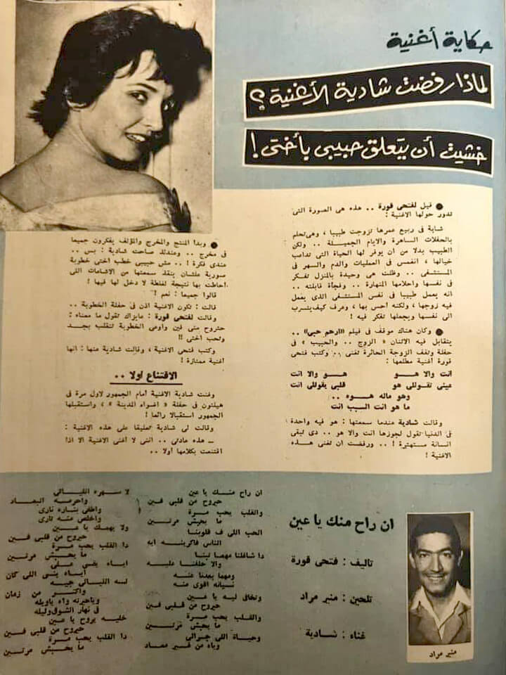 نكشف لأول مرة : شادية صاحبة فكرة (إن راح منك يا عين)، وننشر كلماتها الأولى