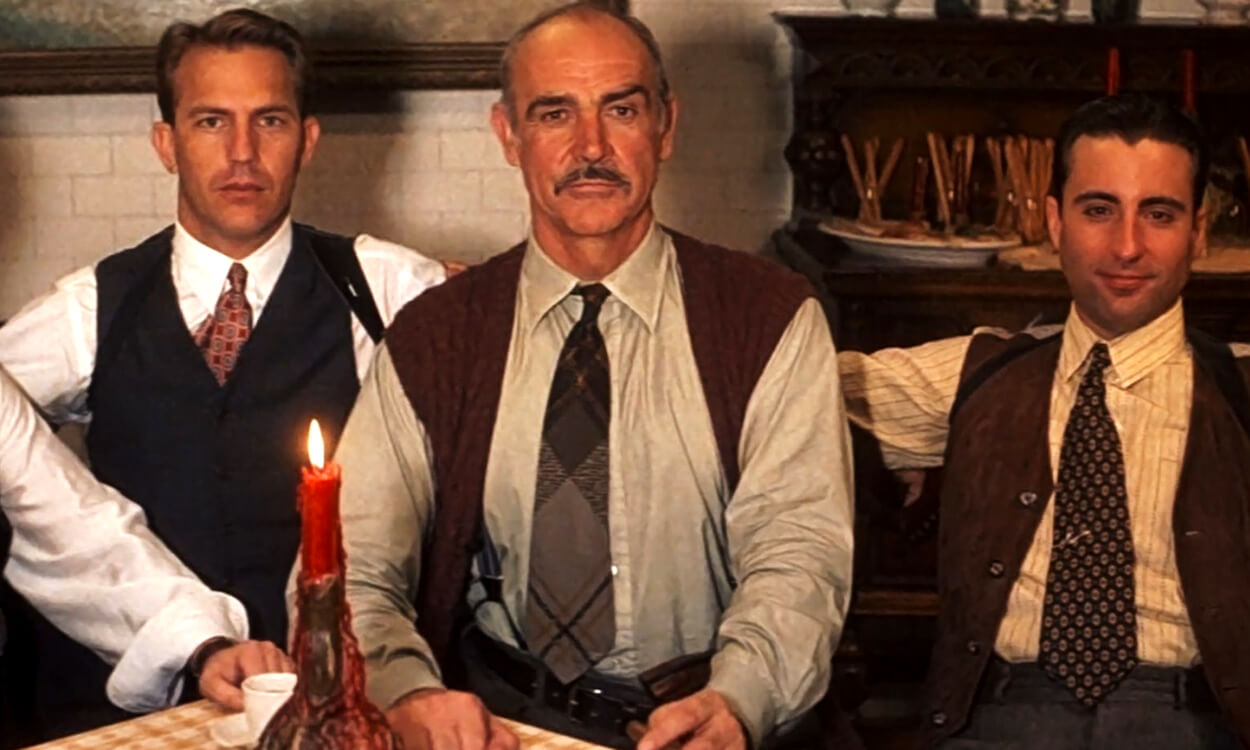– في عام 1987 يشارك “شون كونري” النجم “روبرت دي نيرو” والنجم “كيفن كوستنر” والنجم الشاب الصاعد آنذاك “آندي جارسيا” ونجوم آخرين في فيلم The Untouchables ، والذي يجسد فيه “كونري” شخصية “جيمي مالون” الذي يستعين به وبخبرته العميل الحكومي “إليوت نيس” (كيفن كوستنر) المسئول عن منع صناعة وتجارة الكحول في مدينة “ويندي سيتي” في شيكاغو الأمريكية ، لكنه فشل بسبب انتشار الفساد بين أفراد شرطة المدينة ، ويريد “إليوت” تشكيل فرقة قوية وصلبة لا تقبل الرشاوي ولا تخاف الموت من أجل إسقاط “آل كابوني” (روبرت دي نيرو) صاحب إمبراطورية صناعة وتجارة الكحول الغير مشروعة آنذاك ، وينضم بالفعل الخبير “جيمي مالون” ومعه العميل الشاب “جورج ستون” (آندي جارسيا) إلى فرقة “إليوت نيس” وينجحون معاً في مهمتهم ولكن الثمن كان باهظاً حيث يتم قتل “جيمي مالون” (شون كونري) على يدِ أحد رجال “آل كابوني” .