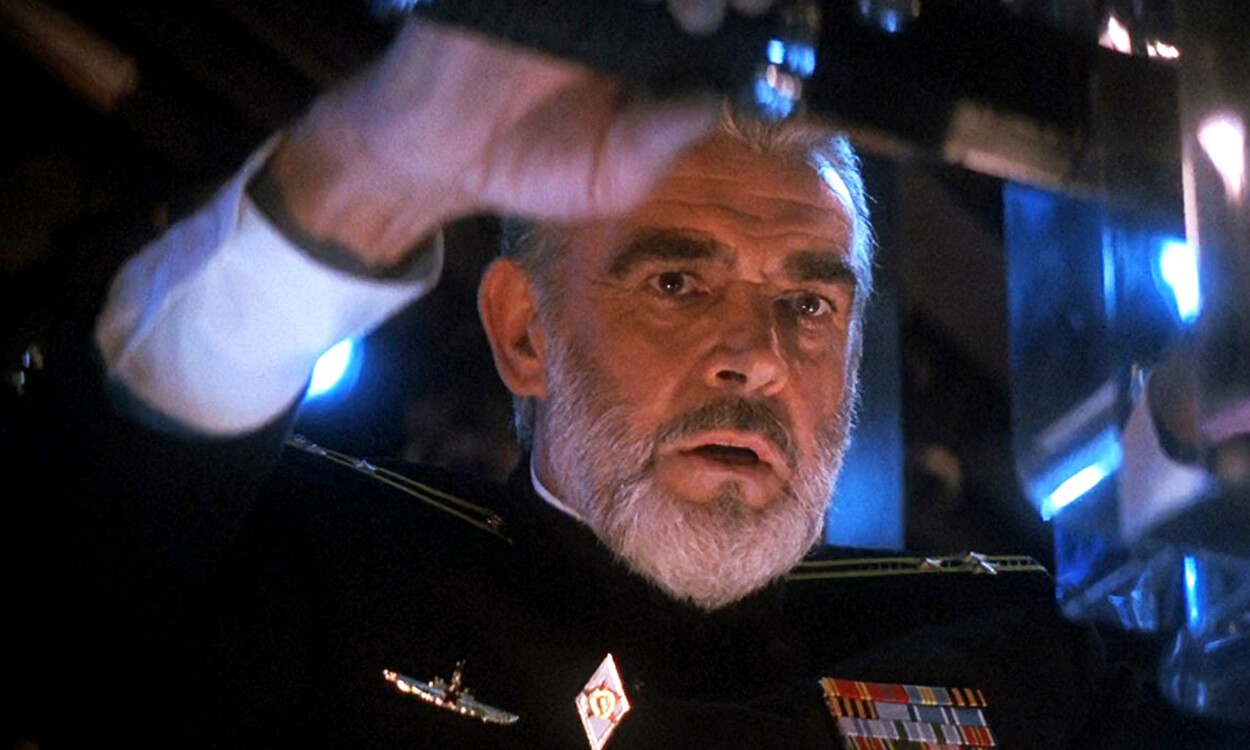 – في عام 1990 يشارك “شون كونري” في بطولة فيلم The Hunt for Red October مع “أليك بالدوين” و”سام نِل” و”سكوت جلين” و”جيمس إيرل جونز” و”جوس أكلاند” و”بيتر فيرث” ونجوم آخرين ، وقصة الفيلم مأخوذة عن رواية للكاتب الأمريكي الشهير “توم كلانسي” ، ويجسد “كونري” في هذا الفيلم شخصية “ماركو رامياس” قبطان الغواصة السوفييتية (الروسية) الذي يتجاهل الأوامر العليا ويتوجه بالغواصة (المجهزة بتقنية التخفي) نحو الساحل الشرقي للولايات المتحدة ، وعندما يكتشف طاقم إحدى الغواصات الأمريكية وجود الروس قبالة الساحل الشرقي ، يبدأ عميل المخابرات الأمريكية “جاك رايان” (أليك بالدوين) في تحليل وتحديد دوافع القبطان “ماركو رامياس” لهذا التصرف خشية أن تشن الغواصة الروسية هجوماً على الولايات المتحدة الأمريكية . ترشح “كونري” عن هذا الفيلم لجائزة أفضل ممثل من BAFTA ، وترشح الفيلم لثلاث جوائز أوسكار فاز منها بجائزة أفضل مؤثرات صوتية ، كما ترشح الفيلم لجائزتين أخرتين من BAFTA كأفضل صوت وأفضل ديكور . تكلف إنتاج هذا الفيلم 30 مليون دولار وجمع عالمياً أكثر من 200 مليون دولار .