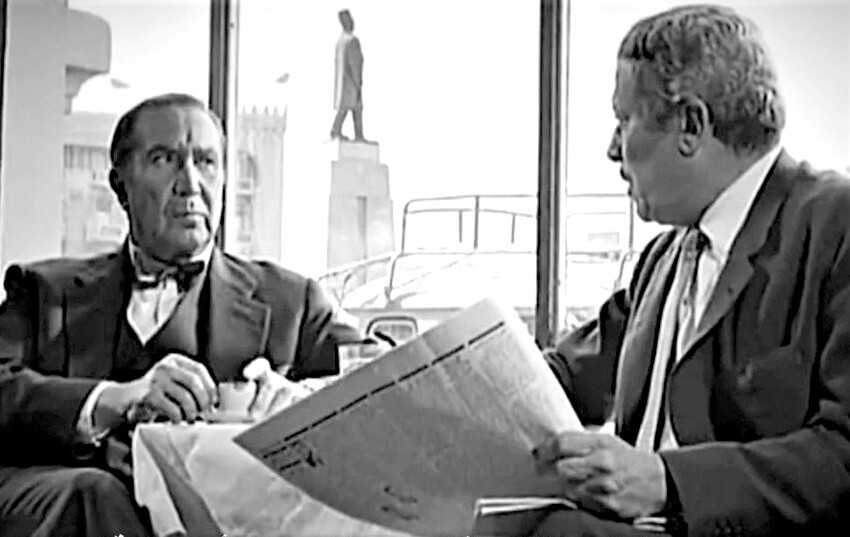 * جلست رئيسة الرقابة مع زملائها يشاهدون الفيلم ويضحكون على قفشات (يوسف وهبي) وهم يتلفتون حولهم مخافة أن يطب عليهم وكيل الوزارة أو وزير الثقافة!