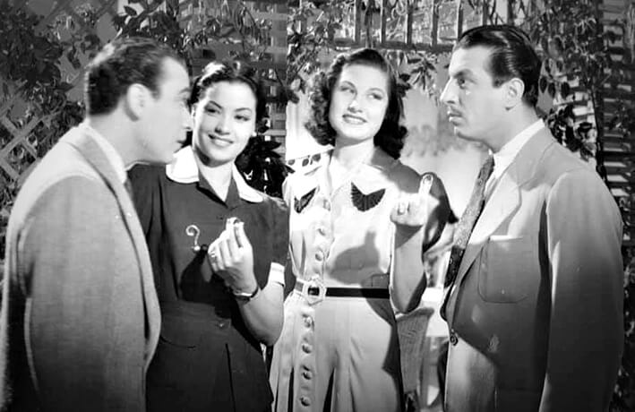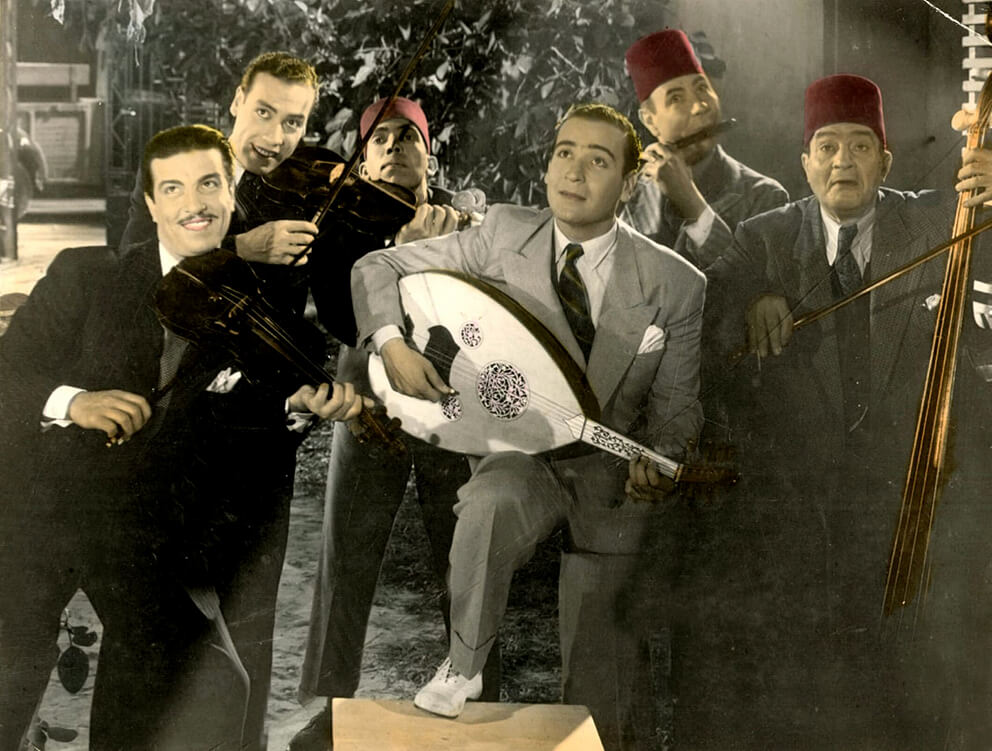 توجو مزراحي مع أبطال فيلمه (تحيا الستات) الذي ناصر المرأة المصرية