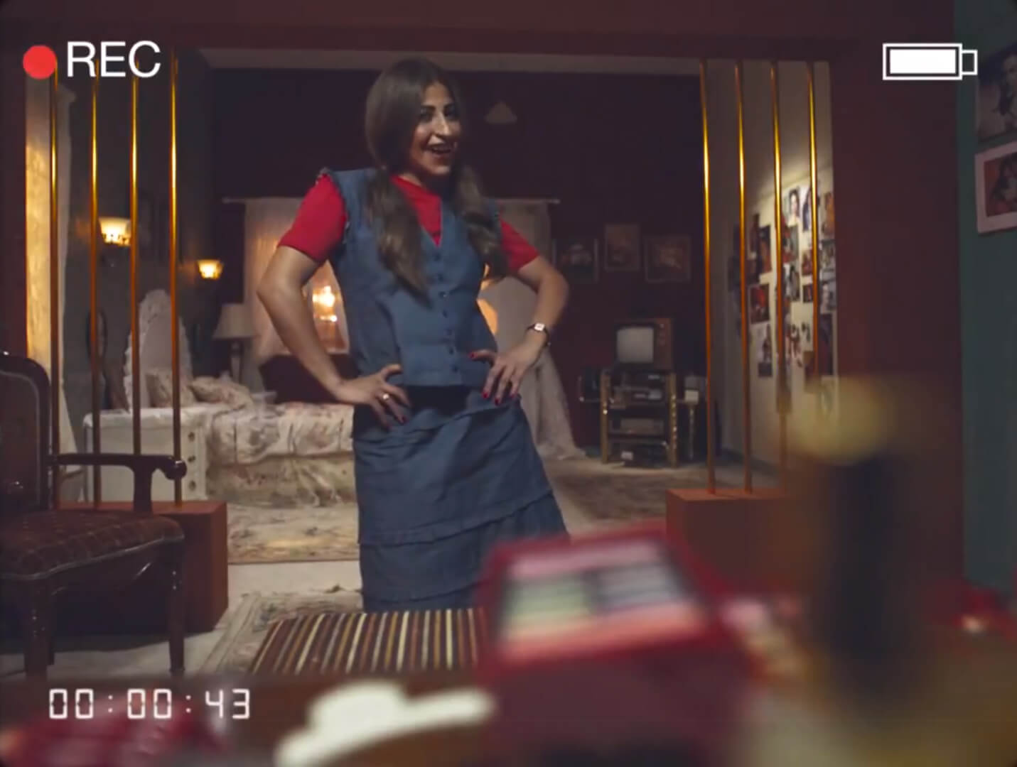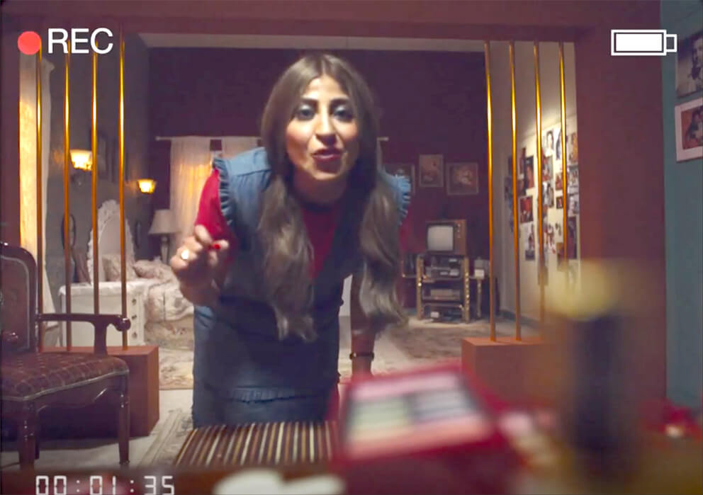 ويبدأ المشهد بنظرة باردة من جانب المحقق على شريط الفيديو الذي يدين (رحمة) في اعترافاتها التي تنم عن اضطراب نفسي، وتظهر وهى تضبط زاوية الكاميرا نحوها عبر جهاز تليفزيون ينتمي لحقبة الثمانينات من القرن الماضي، ثم تتجه رحمة لتشغيل جهاز الكاسيت على أغنية راقصة.