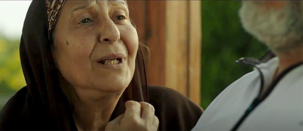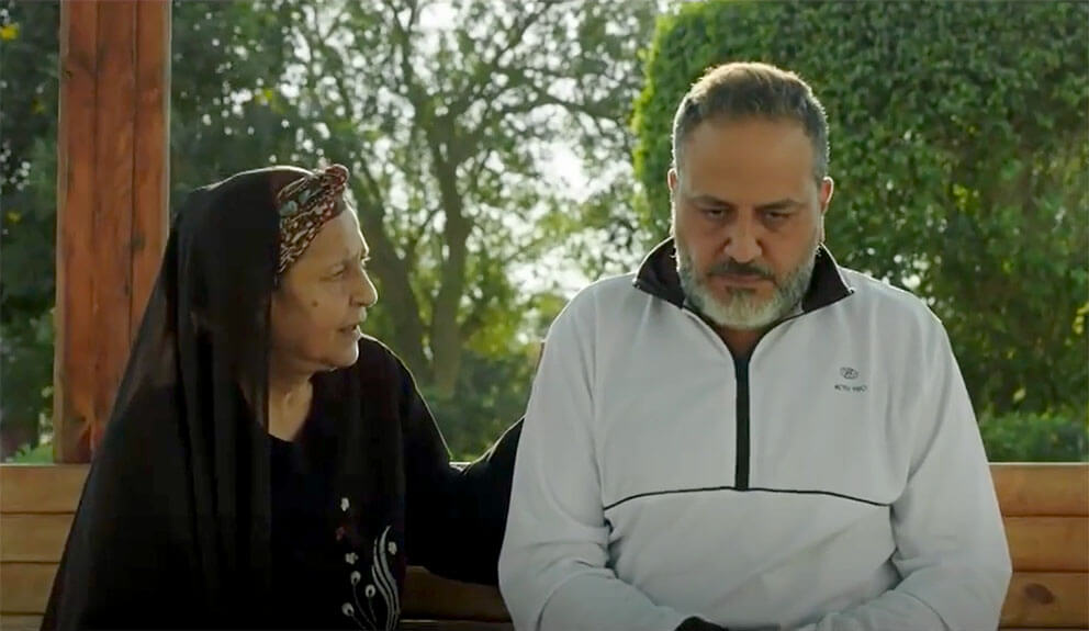 جسلت (أم رضا) بجواره ابنه على الأريكة في محاولته لاستعادته الثقة بنفسه وعودته إلى بيته كي يعود ليمارس حياته من جديد قائلة : ها يا يارضا .. عامل ايه؟
