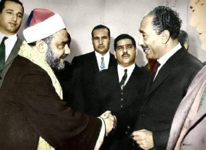 وتلك قصة معروفة حتى أننا كدنا أن نحفظها من كثرة كتابتها في كل ذكرى لوفاة النقشبندي، وقد أصبح معروفا من الابتهالات بالضرورة أن النقشبندي حينما حم قضاء الله وتحتم بأمر من الرئيس السادات أن يغني أغنية دينية من تلحين بليغ حمدي، والشيخ لا يستطيع أن يرد أمر الرئيس، ولكن خلفيته وطريقته الصوفية وابتهالاته السابقة تتأبى على أن يبتهل بصحبة الموسيقى، ليس اعتراضا على الموسيقى ولا تحريما لها، ولكنه كان آنذاك يضع فارقا بين الأغاني والابتهالات، ولم يكن من المعتاد أن تصاحب الابتهالات موسيقى، ولكن قرارات الرؤساء لا تُرد، وقد يكون الشيخ تساءل: إن كان ولا بد فأين السنباطي ملك تلحين القصائد؟، ولكن لا سنباطي ولا عبد الوهاب ولا يحزنون، هو بليغ وحده وفقا لأمر السادات، ولكن النقشبندي مع ذلك كان على استعداد لرفض اللحن إذا جاء بشكل راقص، فوقار الابتهال يتأبى على ذلك، ويبدو أن النقشبندي لم يكن يُحسن الظن ببليغ، فكان أن اتفق على علامة يبديها لرئيس الإذاعة وقتها (وجدي الحكيم) أثناء سماعه للحن في ستديو الإذاعة، وهى أن يخلع الشيخ عمامته إذا أعجبه اللحن، وما أن انتهى بليغ من عزف اللحن حتى خلع النقشبندي العمامة والجبة والقفطان، مبديا إعجابه الشديد باللحن، فكانت الأغنية التي لا زالت تعيش في قلوبنا وتترك أثرها في مشاعرنا.
