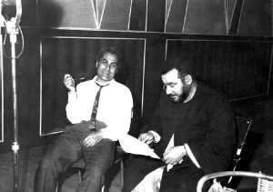 يتلقى النهنئة من أحد القساوسة على براعة صوته