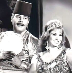 سي السيد أو يحيي شاهين يمسك الرق للسلطانة زبيدة العالمة في الثلاثية