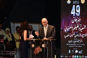 وأضافت في كلمتها، بأنه قبل تكريم نجومنا، لابد ألا ننسى نجومنا الراحلين، الذين أسعدونا بأعمالهم و فارقوا الحياة العام الماضي، وبدأ بعدها عرض فيديو للراحلين على الشاشة، رحبت بعدها برئيس المهرجان مدير التصوير محمود عبدالسميع، و دعته لإلقاء كلمته، والذي رحب بالحضور الكريم، وقال إن جمعية الفيلم تم تأسيسها عام 1960، و تزاول نشاطها كل يوم سبت حتى الآن، وقد تم تأسيس مهرجان جمعية الفيلم عام 1974، والعام المقبل سيكون اليوبيل الذهبي للمهرجان.