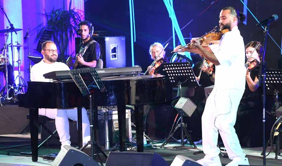 توالت فعاليات (المهرجان الصيفى) الذى تنظمه وزارة الثقافة عبر دار الأوبرا المصرية برئاسة الدكتور علاء عبد السلام حيث عاد الثنائي محمد فؤاد (بيانو) وأحمد منيب (كمان) لينسجا خيوط الموسيقى وسط حشد من جمهور صيف الاوبرا 2025 على المسرح المكشوف وإستضافا المنشد مصطفى مهلل والمؤلف خالد الكمار .