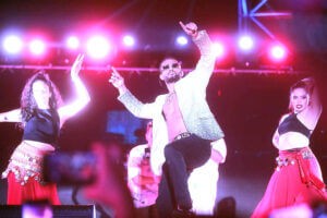 ففي قلب الحفل، تسللت مجموعة من النساء والفتيات إلى المسرح، وتهافتن على الفنان (راغب علامة) لتقبيله بشكل علني وفج، أمام عدسات الكاميرات وآلاف الحضور.