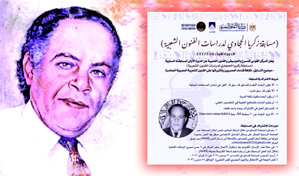 أعلن المركز القومي للمسرح والموسيقى والفنون الشعبية عن انطلاق الدورة الأولى من مسابقة (زكريا الحجاوي لدراسات الفنون الشعبية)، في إطار استراتيجية وزارة الثقافة لتعزيز الهوية الوطنية والاعتزاز بالتراث الشعبي المصري، وبرعاية وزير الثقافة.