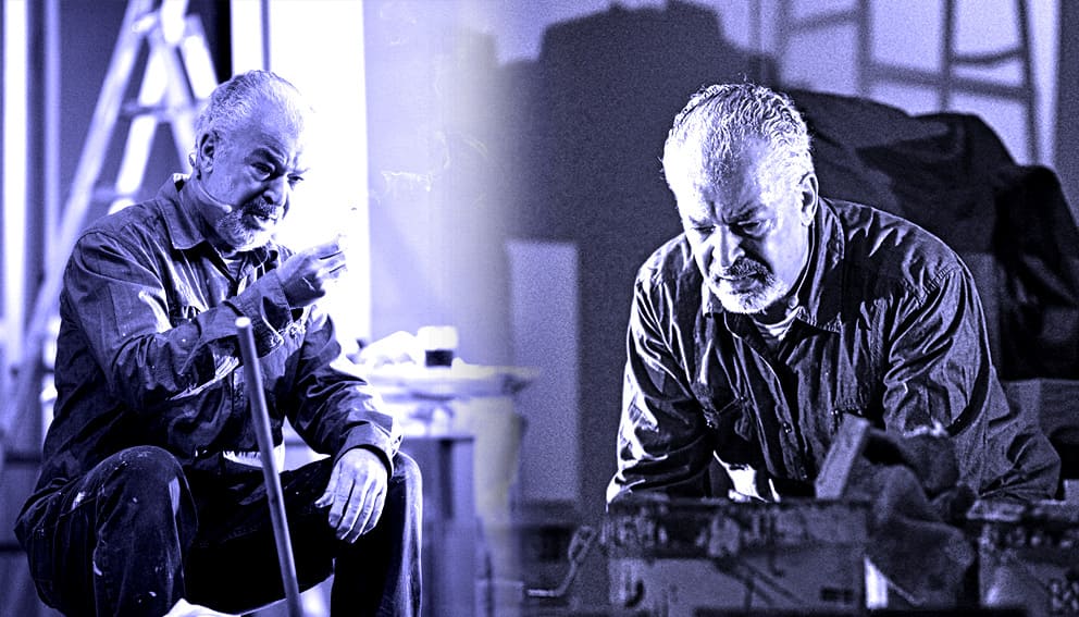وهو ينجح في أن يأخذ المشاهد معه في انتقالات وجدانية سلسة، سواء بين الشخصيات المتعددة التي يستحضرها أو بين شخصية (أبي حسن) بكل عذاباتها وتقلباتها الشعورية والانفعالية، فيملأ فراغ الخشبة المسرحية بحضوره واجتهاده وحرصه على أن يبقى العرض مشتعلا ينتقل من ذروة إلى أخرى.