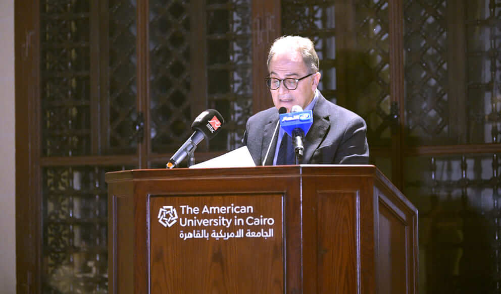 والدكتور ياسر الشايب، أستاذ تطبيقات هندسة الصخور في التراث والآثار بجامعة القاهرة، والدكتور خليل الخضري، خريج الجامعة عامي 2003 و2006، وأستاذ الهندسة الميكانيكية والعميد المشارك لشؤون دراسات البكالوريوس بالجامعة الأمريكية بالقاهرة، وأدارت الجلسة الدكتورة هدى مصطفى، مديرة مركز التعلم والتدريس بالجامعة الأمريكية بالقاهرة.