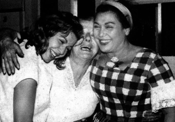وتحكي الصور عن يوم جنازة نجيب الريحاني لنعرف منها أن بديعة كانت تكاد أن تموت حزنا عليه.