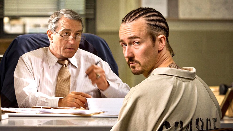 الممثل إدوارد نورتون مع النجم روبرت دي نيرو في فيلم Stone – إنتاج 2010