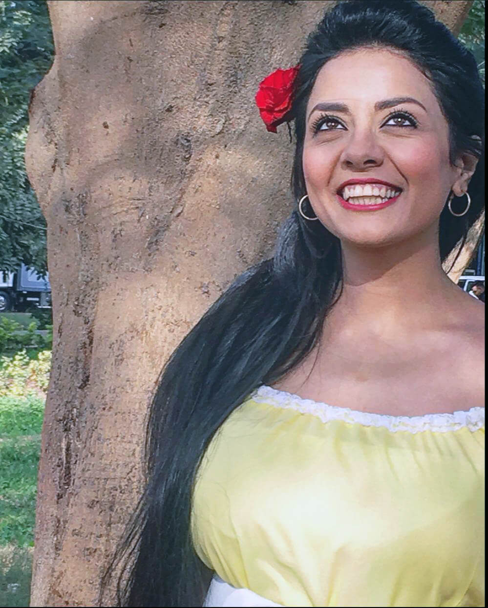 فتاة سمراء .. استمدت جمالها من طينة هذه الأرض الطيبة، حين اختلطت بمياه النيل في رحلة جريانه منذ آلاف السنين من الجنوب إلى الشمال في دعة وخيلاء، ذات شعر أسود طويل يشبه سواد الليل، وقوام عادي، قصيرة نسبيا، وتحمل ذات الملامح العادية جدا التي تحملها كل بنات النيل، ربما لهذا السبب تحديدا كانت تصلح دائما لكل الأدوار، بملابس غالية الثمن وإكسسوارات ولمسات الكوافير والكعب العالي تصبح ابنة ذوات على درجة عالية من الفتنة، وبجلابية وإيشارب وشبشب وموبايل رخيص، تصبح فتاة شعبية بامتياز، وبإمكاناتها فقط تصبح فتاة ملبوسة كما ظهرت في مسلسل “كفر دلهاب” الذي قدمها للجمهور بشكل مختلف بحيث وضعها على سلم النجومية في الداء الدرامي العذب.