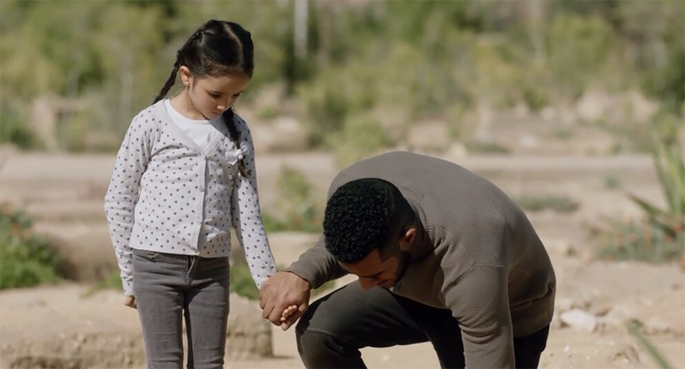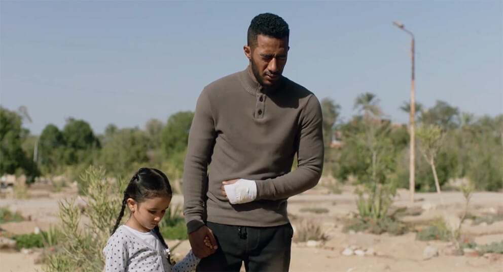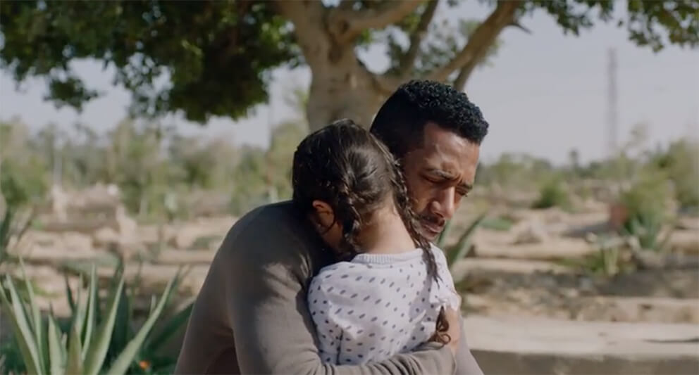 ينتهي حوار الحزن والشجن عند هذا الحد، ثم يركع رضوان على الأرض من جديد على ركبتيه ليحضن ابنته، بينما ينطق عزف الناي المعبرعن جلال الموقف ليمهد لـ “أحمد سعد” أن يطلق صوته بترنيمة حزينة قائلا: