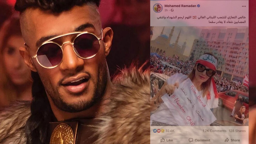 وكان رمضان نشر على صفحته في “فيسبوك” صورة لفتاة لبنانية تحمل لافتة مكتوباً عليها: (بنحبك يا محمد رمضان نمبر وان)، وعلّق على الصورة قائلاً: (خالص التعازي للشعب اللبناني الغالي، اللهم ارحم الشهداء واشف المصابين شفاء لا يغادر سقماً).