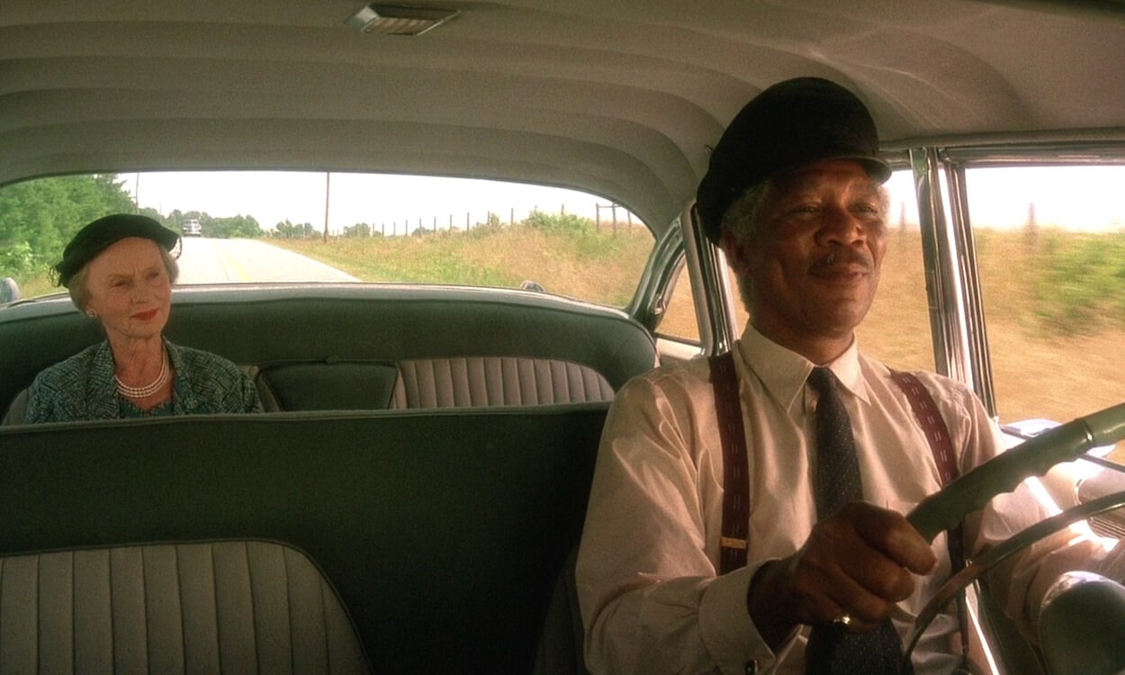 – في عام 1989 يقدم “مورجان فريمان” فيلم Driving Miss Daisy مع الممثلة القديرة – الراحلة “جيسيكا تاندي” – ويجسد فيه “فريمان” دور “هوك كولبورن” وهو السائق الأمريكي ذو الأصول الأفريقية الذي اضطر “بولي” (الممثل دان آيكرويد) إلى جلبه ليعمل سائقاً لوالدته الأرملة العجوز ذات البشرة البيضاء “ديزي ويرثان” (الممثلة جيسيكا تاندي) بعدما حطمت سيارتها في حادث ، ومنذ اللحظة الأولى من عمله معها تبدو العلاقة بين السائق “هوك” والسيدة “ديزي” في غاية الصعوبة والتعقيد ، ولكن مع مرور السنوات تتكون بينهما صداقة وطيدة تتجاوز العنصرية العرقية والأعراف الاجتماعية السائدة بالمجتمع الأمريكي آنذاك.