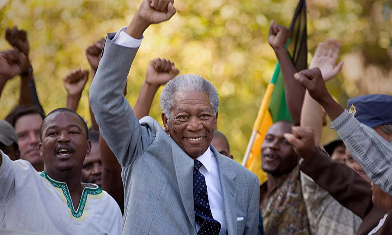 – في عام 2009 يقدم “مورجان فريمان” بقيادة المخرج “كلينت إيستوود” فيلم Invictus مع النجم “مات ديمون” ، ويجسد فيه “فريمان” شخصية “نيلسون مانديللا” بعدما قضى 27 عاماً في السجن ثم خرج وتم انتخابه رئيساً لدولة جنوب أفريقيا ، والذي يسعى إلى توحيد البلاد وإخراجها من دائرة الانقسامات العنصرية التي لاحظها من خلال مباريات “كرة الرجبي” الدولية لفريق جنوب أفريقيا عندما كانت الجماهير ذات البشرة السوداء تهتف ضد اللاعبين ذوي البشرة البيضاء ومن بينهم اللاعب “فرانسوا بينار” (مات ديمون) ، ويسعى الرئيس “مانديللا” خلال فترة رئاسته الأولى إلى تحقيق حلمه في توحيد شعب بلده والتعايش في سلام بين البيض والسود.