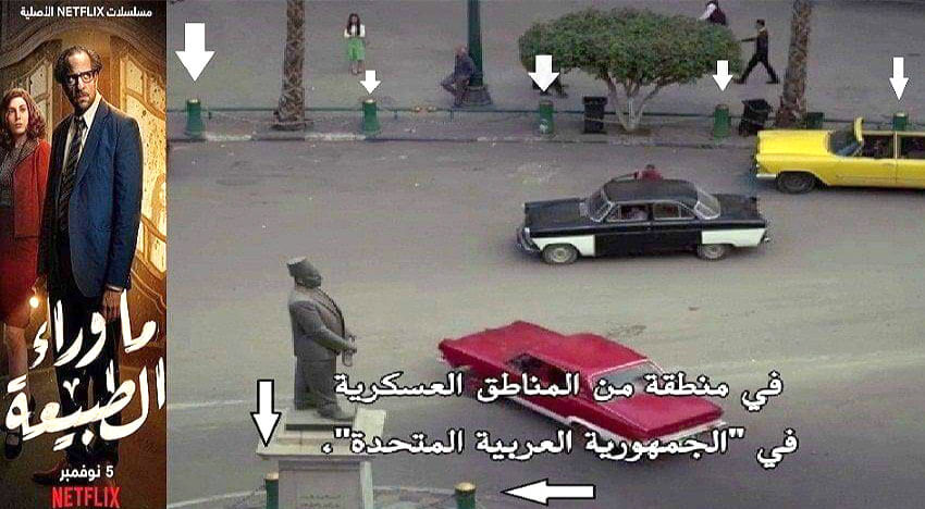 بينما قال المؤرخ والعالم الأثري (سامح الزهار) علي صفحتة بموقع التواصل الاجتماعي فيس بوك: (شاهدت  أول دقيقتين من مسلسل  (ماوراءالطبيعة) فوجدت في الدقيقة الثانية يظهر ميدان طلعت حرب وتمثاله الشهير، ويظهر حول التمثال أعمدة حديدية خضراء قصيرة ذات رؤوس مُذهبة بينها سلاسل تعمل كحواجز، كذلك في محيط الميدان، (وهذا خطأ كبير)، فأحداث الدراما تدور في القاهرة سنة 1969 وفي هذا التوقيت لم يكن يحيط بمعظم تماثيل الميادين أية حواجز، أما الميدان فكان يحيط به سياج حديدي وليس أعمدة بينها سلاسل حديدية (كما يظهر في الصورة 2)، كما أن طبوغرافيا المدينة (القاهرة حينها) بها خلل كبير.