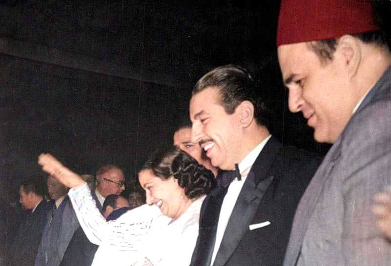 أم كلثوم وأنور وجدي ومصطفى أمين ليلة العرض الخاص لفيلم (فاطمة)