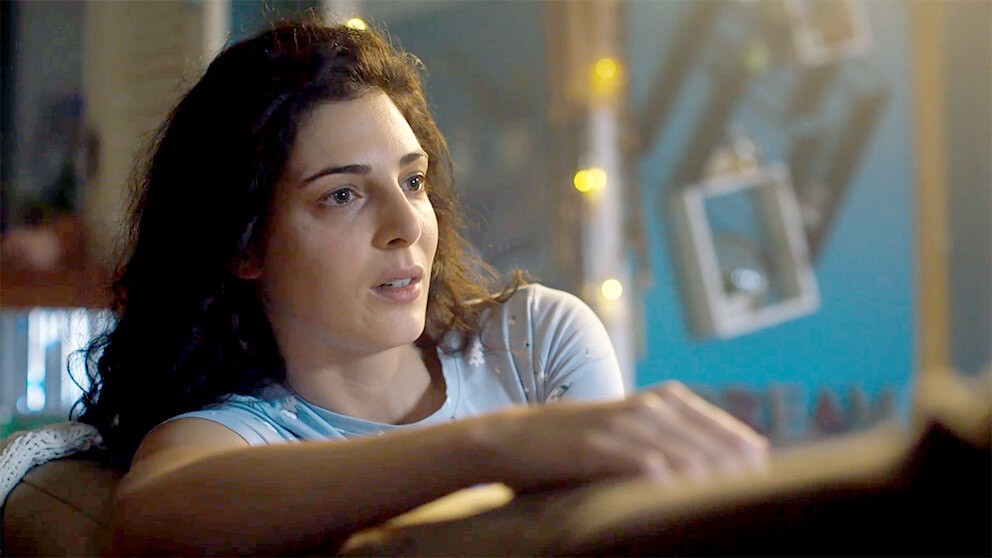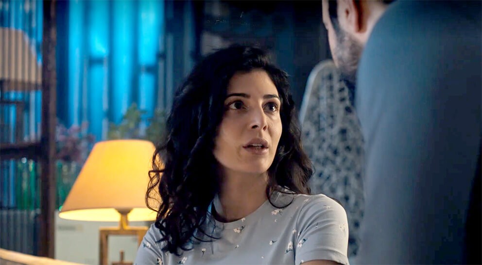 الكاميرا تسلط أضواء كاشفة على وجهها وفي عينيها أسئلة حائرة بينما كرم يحاول استنطاقها عبر لغة العيون التي تنطق بالحقيقة المرة.
