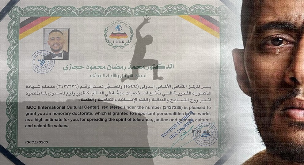 وفي هذا الصدد قال رمضان – بثقة لا أدري من أين يأتي بها؟ – عبر حسابه على (إنستجرام): (شكراً معالي وزير الثقافة اللبناني والسيد نقيب الموسيقيين و نقيب الممثلين اللبناني على منحي الدكتوراه الفخرية في التمثيل والأداء الغنائي.. وشكراً المركز الثقافي الألماني في لبنان على منحي لقب سفير الشباب العربي، وأثارت هذه الشهادة جدلا واسعا على مواقع التواصل الاجتماعي ما بين مؤيد ومعارض، ولم تمضي سوى سويعات قليلة حتى وجدنا أن المركز الذي أخذ منه محمد رمضان شهادة الدكتوراه هو مركز مجهول ولم تتوفر عنه أي بيانات، ولا يوجد له موقع إلكتروني خاص به، أو أي حسابات موثوقة على مواقع التواصل الاجتماعي، وهو ما يجعل المركز (مجهول الهوية) ويفتح باب الشك في مزاعمه الاستفزازية.
