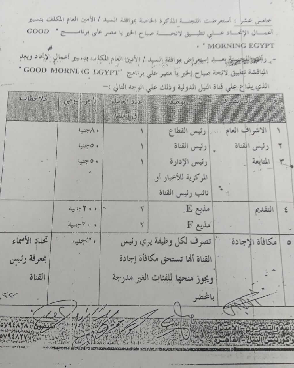 لائحة أجور هزيلة لبرنامج (صباح الخير يامصر) قبل 17 عاما