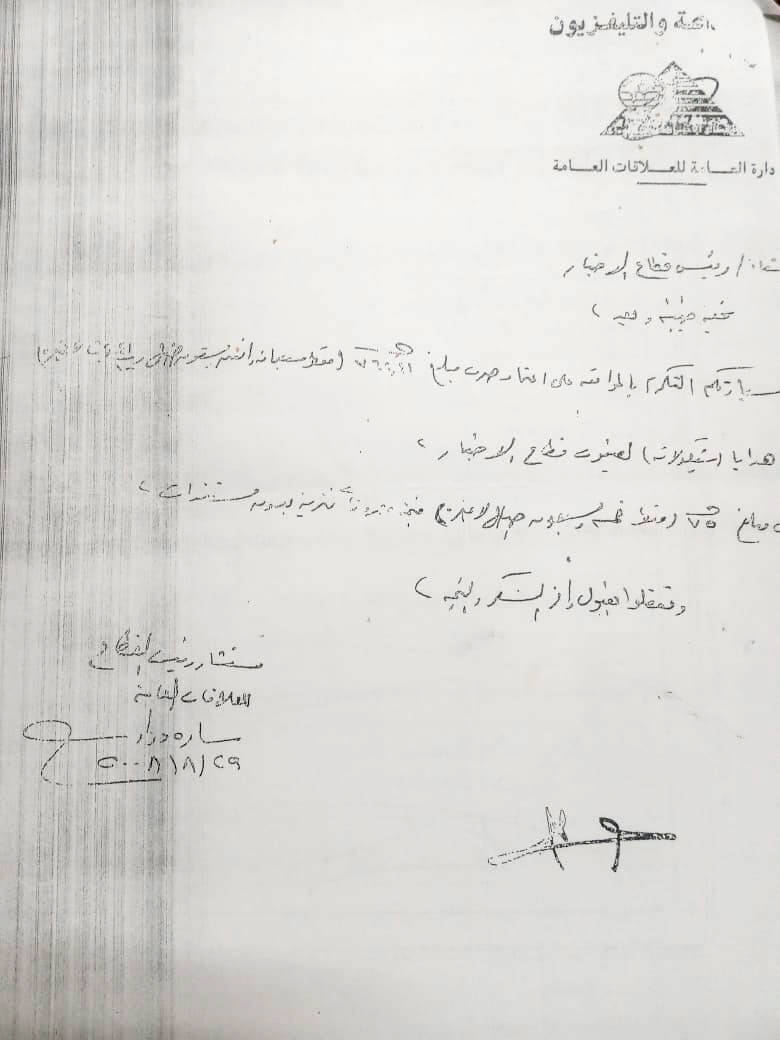 وقام رئيس قطاع الأخبار بالتوقيع فقط بدون أن يكتب أوافق أو أي تأشيرة إلا الاسم فقط وقتها، وعندما سالت عن التوقيع علمت أنه يعني الموافقة على الطلب وكان سؤالي عن صرف 75 جنيها بدون مستندات خاصة أن هدايا الشيكولاتة كانت تذهب للشخصيات المهمة فقط.