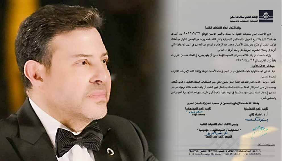 اتحاد النقابات الفنية ونجوم مصر يناشدون هاني شاكر بالتراجع عن استقالته