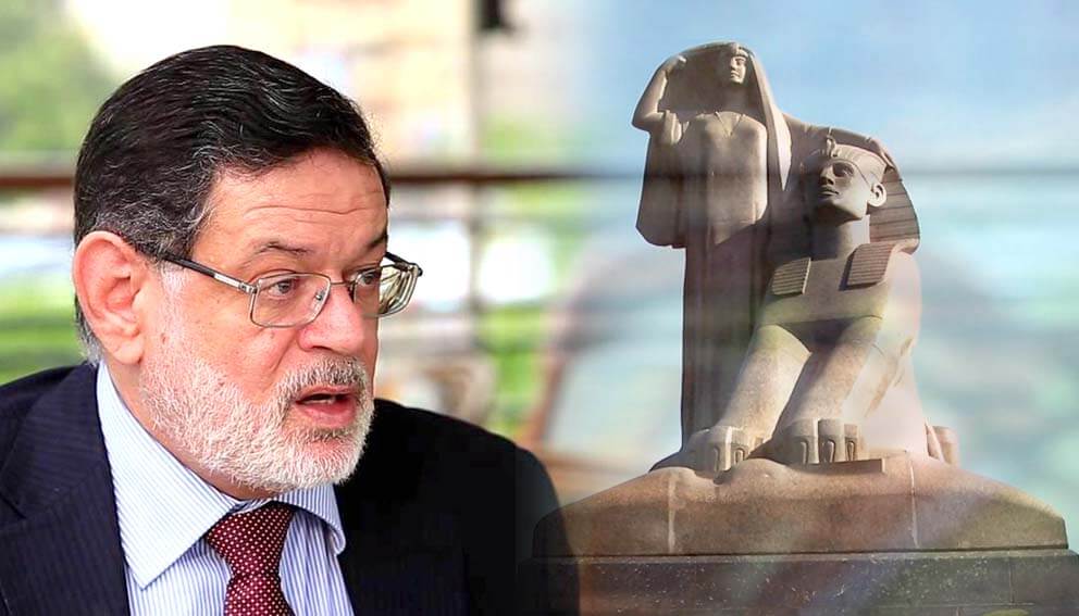 وإذا كانت الفتاة هى مصر بتاريخها القديم ونهضتها الحديثة فما شأن أبى الهول؟ الشيء الثابت هنا هو أن فكرة التمثال مسروقة أو مسبوق إليها، وأنها على ذلك جاءت غير متقنة، بها عيوب أخرى، ذلك أن أبا الهول المصور بهذا التمثال لا يشبه فى شيء من ملامحه أبا الهول القديم الذى بناه الفراعنة، وإنما هو صورة منقولة عما فى معابد البطالسة باليونان.. أما التحجج بأن التمثال يمثل رمزية للتقدم فإن الارتكان إلى أبي الهول لا يؤدي إلى ذلك ولكنه يشير إلى الجمود والتقليد والاستناد إلى القديم.