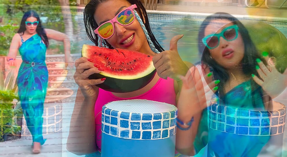 (شهريار النجوم) دق باب النجمة الكبيرة سمية الخشاب وبارك لها الأغنية المصورة، فأعربت لنا عن سعادتها الغامرة بهذه الأغنية التى كتبها ولحنها ووزعها مجموعة من الشباب الصغار الشطار، المليئين بالحيوية والنشاط، والطاقة، والذين يمتلكون خفة دم عالية في الكتابة واللحن والتوزيع، واستطاعوا التعبير من خلال الأغنية عن أمنية وأحلام كثير منا في ظل موجة الحر الشديدة التى نعاني منها حاليا.